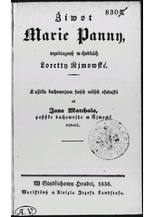 MARCHAL, Jan. Žiwot Marie Panny, wyobrazený w chodbách Lorety Řjmowské. W Gindřichowě Hradci: Aloizius Jozef Landfras, 1838. 55 s.