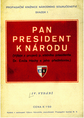HÁCHA, Emil. Pan president k národu: výbor z projevů pana státního presidenta Dr. Emila Háchy s jeho předmluvou. IV. vydání. [Praha]: vydává v zastoupení Výboru Národního souručenství Propagační komise N. S., [1940?]. 32 stran. Propagační knižnice Národního souručenství, svazek 1.