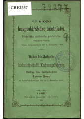 FRENCL, Theodor. O úloze hospodářského účetnictví: přednáška ústředního pokladníka Theodora Frencla v klubu hospodářském dne 5. listopadu 1868 = Ueber die Aufgabe der landwirtschaftl. Rechnungsführung : Vortrag des Centralkassiers Theodor Frenzl im landwirtschaftlichen Club am 5. November 1868. V Praze: Nákladem hospodářského klubu, 1869. 6, 9 s.