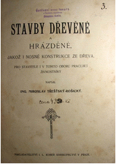 TŘEŠŤSKÝ, Miroslav. Stavby dřevěné a hrázděné, jakož i nosné konstrukce ze dřeva: pro stavitele i v tomto oboru pracující živnostníky. V Praze: I.L. Kober, [1914?]. 328 s., 117 l. obr. příl. Kronika práce, XIII, 2.