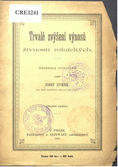 DUMEK, Josef. Trvalé zvýšení výnosů živností rolnických. 6., rozmnožené a nově spracované vyd. V Praze: J. Dumek, 1890, 29 s.
