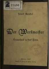 BENDEL, Josef. Der Werkmeister: Trauerspiel in fünf Acten. Brünn: Friedr. Irrgang, 1899. 126 s.