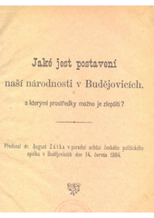 ZÁTKA, August. Jaké jest postavení naší národnosti v Budějovicích, a kterými prostředky možno je zlepšiti?. V Budějovicích: Nákladem česk. politického spolku, 1884, 16 s.