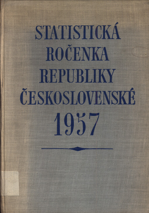 Anotace k ročence 1957: Ročenka, v základních údajích sahajících až k r. 1948, ukazuje hospodářský a kulturní rozvoj lidově demokratického Československa. Jsou zachycena data z těchto oborů: základní ukazatele rozvoje nár. hospodářství, území apodnebí, obyvatelstvo a jeho pohyb, práce, výstavba, průmysl, stavebnictví, zemědělství, lesnictví, doprava a spoje, komunální a bytové hospodářství, obchod, spotřeba a ceny, školství, zdravotnictví, sociální zabezpečení,kultura, tělesná výchova, národní důchod a finance a mezinárodní přehled. Před každou kapitolou jsou zařazeny metodické vysvětlivky základních ukazatelů.