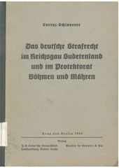 LORENZ, Max, ed. a SCHINNERER, Erich, ed. Das deutsche Strafrecht im Reichsgau Sudetenland und im Protektorat Böhmen und Mähren. Prag :, Berlin: J.G. Calve'sche Universitätsbuchhandlung Robert Lerche ;, Walter de Gruyter & Co., 1940. 354 stran.
