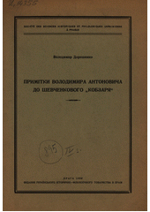 DOROŠENKO, Volodymyr. Prymìtky Volodymyra Antonovyča do Ševčenkovoho "Kobzarja". Praha: Vydannja Ukrajins'koho Ìstoryčno-Fìlolohìčnoho Tovarystva v Prazì, 1937. 12 stran.