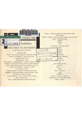 GOLDFLAM, Arnošt. Muž bez vlastností. Vyd. 1. Brno: Větrné mlýny, 2002. 84 s. Současná česká hra, 17/2002.