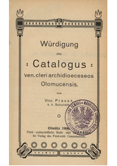 PRASEK, Vincenc. Würdigung des Catalogus ven. cleri archideoeceseos Olomucensis. Olmütz: Erzb. Konistorium, 1906. 65 s.