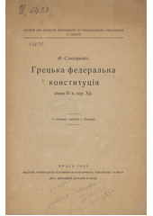 SLJUSARENKO, Fedìr Pavlovyč. Hrec'ka federal'na konstytucìja kìncja IV v. per. Chr: z ostannìch znachìdok u Epìdavrì. Praha: Ukrajins'ke ìstoryčno-fìlolohyčne tovarystvo, 1925. 12 stran.