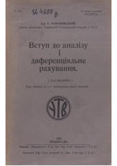 ROMANOVS‘KYJ, Svjatoslav. Vstup do analìzu ì dyferencìjal'ne rachuvannja: kurs čytanyj na s.h. ìnženernomu vìddìlì Akademìji. (2-he vydannja). Podjebrady: Nakladom Ukr. Hosp. Akademìji ta "Vyd T-va pry U.H.A.", 1925. 246 stran. Vydannja "Vydavnyčoho T-va pry Ukrajins'kìj Hospodars'kìj Akademìji v Č.S.R., Č. 122.