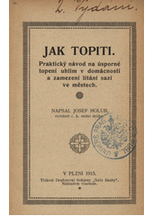 HOLUB, Josef. Jak topiti: praktický návod na úsporné topení uhlím v domácnosti a zamezení lítání sazí ve městech. 2. vydání ?. V Plzni: Josef Holub, 1915. 14 stran.