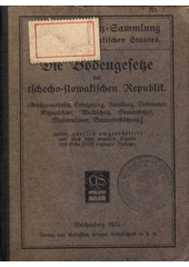 Československo. Die Bodengesetze der tschecho-slowakischen Republik: (Großgrundbesitz, Enteignung, Zuteilung, Bodenamt, Kleinpächter, Waldschutz, Gemeindegut, Meliorationen, Bauunterstützung). Zweite, gänzlich umgearbeitete und nach dem neuesten Stande (bis Ende 1920) ergänzte Auflage. Reichenberg: Verlag von Gebrüder Stiepel Gesellschaft, 1921. 239 stran. Stiepels Gesetz-Sammlung des Tschecho-slowakischen Staates, Nr. 7.