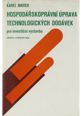 MAREK, Karel. Hospodářskoprávní úprava technologických dodávek pro investiční výstavbu. 1. vyd. Brno: Univerzita Jana Evangelisty Purkyně, 1987. 119 s.
