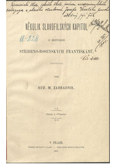 ZAHRADNÍK, Rudolf M. Několik slavofilských kapitol z historie stříbrnobosenských františkánů. Praha: nákl. vl., 1901. 33 s.