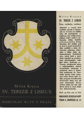 KREJZA, Miloš. Sv. Terezie z Lisieux: život, myšlenky, meditace. Praha: Bohuslav Rupp, 1947. 169 stran, 5 nečíslovaných listů obrazových příloh. Setba Boží, svazek 2.