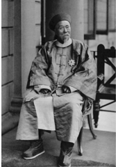 Rok: 1823-1901 Li Chung-čang je čínské jméno, v němž Li je příjmení.Li Chung-čang GCVO (TZ: 李鴻章, ZZ: 李鸿章, pchin-jin: Lǐ Hóngzhāng; 15. února 1823 – 7. listopadu 1901) byl chanský úředník, politik, generál a diplomat za pozdních Čchingů. V roce 1847 dosáhl nejvyššího stupně úřednických zkoušek: ťin-š' (進士, skutečný učenec). Během své kariéry se podílel na potlačení povstání tchaj-pchingů (1850 až 1864) a nienů (1851 až 1868). Postupně zastával několik pozic místokrálů (總督, cung-tu): Chu-kuang (1867–1870), Č'-li (v rámci Čchingské říše nejvýznamnější; poprvé 1871 až 1895 a podruhé 1900 až 1901) a Liang-kuang (1899–1900).Jako jeden z představitelů hnutí za sebeposílení (洋务运动) se pokusil modernizovat čchingské pozemní a námořní síly. Nedokázal ale zabránit císařovně vdově Cch'-si ve zpronevěře armádních a námořních fondů, což se projevilo v porážce jeho jednotek během první čínsko-japonské války. Touto porážkou utrpěla i jeho prestiž, což ho stálo (mimo jiné) i titul místokrále Č'-li. Během vyjednávání mírové smlouvy byl na něho v Japonsku spáchán neúspěšný atentát. Během povstání boxerů byl proti císařské pomoci boxerům. |