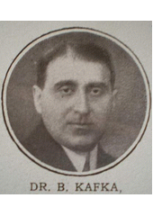 Rok: 1881-1931 Bruno Kafka (27. září 1881 Praha – 12. července 1931 tamtéž) byl rakousko-uherský a československý právník, vysokoškolský pedagog a politik židovského původu, meziválečný poslanec Národního shromáždění za Německou demokratickou svobodomyslnou stranu a Německé pracovní a volební společenství. |