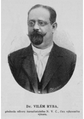 Rok: 1849-1907 Vilém Ryba (2. září 1849 Kralupy nad Vltavou – 18. srpna 1907 Planá nad Lužnicí) byl český novinář a politik, za Rakouska-Uherska na počátku 20. století poslanec Říšské rady. |
