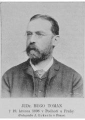 Rok: 1838-1898 Hugo Toman (20. října 1838 Rychnov nad Kněžnou – 19. března 1898 Podhoří, dnes Praha-Troja) byl český právník, historik, novinář a znalec výtvarného umění. Zaměřil se především na husitství a české státní právo. |