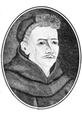 Rok: 1644-1709 Abraham a Sancta Clara (July 2, 1644 – December 1, 1709), Austrian divine, was born at Kreenheinstetten, near Messkirch. His lay name was Johann Ulrich Megerle (Not to be confused with his uncle Abraham Megerle, composer (1607–1680)).He has been described as "a very eccentric but popular Augustinian monk".In 1662 he joined the Catholic religious order of Discalced Augustinians, and assumed the religious name by which he is known. In this order he rose step by step until he became prior provincialis and definitor of his province.Having early gained a great reputation for pulpit eloquence, he was appointed imperial court preacher at Vienna in 1669.The people flocked to hear him, attracted by the force and homeliness of his language, the grotesqueness of his humour, and the impartial severity with which he lashed the follies of all classes of society and of the court in particular. In general he spoke as a man of the people, the predominating quality of his style being an overflowing and often coarse wit. There are, however, many passages in his sermons in which he rises to loftier thought and uses more dignified language. He died at Vienna on 1 December 1709.In his published writings he displayed many of the same qualities as in the pulpit. Perhaps the most favorable specimen of his style is his didactic novel entitled Judas der Erzschelm (4 vols., Salzburg, 1686–1695).His works have been several times reproduced in whole or in part, though with many spurious interpolations. The best edition is that published in 21 vols. at Passau and Lindau (1835–1854). See Th. G von Karajan, Abraham a Sancta Clara (Vienna, 1867); Blanckenburg, Studien über die Sprache Abrahams a S. C. (Halle, 1897); Sexto, Abraham a S. C. (Sigmaringen, 1896); Schnell, Pater A. a S. C. (Munich, 1895); H Mareta, Über Judas d. Erzschelm (Vienna, 1875). |