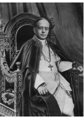 Rok: 1857-1939 Pope Pius XI, (Italian: Pio XI) born Ambrogio Damiano Achille Ratti (Italian pronunciation: [amˈbrɔdʒo daˈmjano aˈkille ˈratti]; 31 May 1857 – 10 February 1939), reigned from 6 February 1922 to his death in 1939. He was the first sovereign of Vatican City from its creation as an independent state on 11 February 1929. He took as his papal motto, "Pax Christi in Regno Christi," translated "The Peace of Christ in the Kingdom of Christ."Pius XI issued numerous encyclicals, including Quadragesimo anno on the 40th anniversary of Pope Leo XIII's groundbreaking social encyclical Rerum novarum, highlighting the capitalistic greed of international finance, and social justice issues, and Quas primas, establishing the feast of Christ the King. The encyclical Studiorum ducem, promulgated 29 June 1923, was written on the occasion of the 6th centenary of the canonization of Thomas Aquinas, whose thought is acclaimed as central to Catholic philosophy and theology. The encyclical also singles out the Pontifical University of Saint Thomas Aquinas, Angelicum as the preeminent institution for the teaching of Aquinas: "ante omnia Pontificium Collegium Angelicum, ubi Thomam tamquam domi suae habitare dixeris" (before all others the Pontifical Angelicum College, where Thomas can be said to dwell).To establish or maintain the position of the Catholic Church, he fostered and concluded a record number of concordats, including the Reichskonkordat with Germany. During his pontificate, the longstanding hostility with the Italian government over the status of the papacy and the Church in Italy was successfully resolved in the Lateran Treaty of 1929. He was unable to stop the persecution of the Church and the killing of clergy in Mexico, Spain and the Soviet Union. He canonized important saints, including Thomas More, Petrus Canisius, Konrad von Parzham, Andrew Bobola and Don Bosco. He beatified and canonized Thérèse de Lisieux, for whom he held special reverence, and gave equivalent canonization to Albertus Magnus, naming him a Doctor of the Church due to the spiritual power of his writings. Pius XI created the feast of Christ the King in response to anti-clericalism. He took a strong interest in fostering the participation of lay people throughout the Catholic Church, especially in the Catholic Action movement. The end of his pontificate was dominated by defending the Catholic Church from intrusions into Catholic life and education.He died on 10 February 1939 in the Apostolic Palace and was buried in the grottos of Saint Peter's Basilica. |