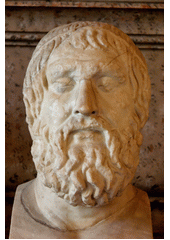 Rok: asi 496 př. Kr.-406 př. Kr. Sofoklés, řecky Σοφοκλης, (497/496 př. n. l., Athény – 406/405 př. n. l.) byl starořecký athénský dramatik, kněz a politik.Sofoklés byl politicky aktivní roku 443/442 př. n. l., kdy byl pokladníkem athénského námořního spolku. V roce 441/440 př. n. l. se stal stratégem (spolu s Periklem) ve válce proti Samu.Jeho otec Sofillos byl bohatým majitelem podniku na výrobu zbraní. Sofókles dostal v mládí velmi dobré gymnastické a múzické vychování. Ve svých prvních hrách vystupoval ještě jako herec, avšak podle starořecké tradice přestal hrát pro slabý hlas. Ačkoli dostával Sofoklés mnoho pozvání do jiných měst, kvůli velké lásce k Athénám tato pozvání odmítal.Jako kněz výraznou měrou přispěl k zavedení Asklépiova kultu do Athén.Za své zásluhy o tento kult byl Sofoklés po své smrti uctíván jako hérós Dexión. Sofoklův syn Iofón obvinil svého otce, který byl již ve vysokém věku, z duševní slabosti a žádal, aby byl zbaven svéprávnosti. Sofoklés vyvrátil synovo tvrzení tím, že přednesl před soudem píseň na Athény ze své poslední tragédie, kterou právě napsal. |