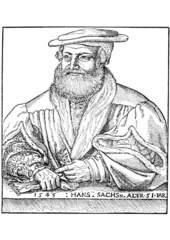 Rok: 1494-1576 This article refers to the poet. For other people of the same name, see Hans Sachs (disambiguation).Hans Sachs (5 November 1494 – 19 January 1576) was a German meistersinger ("mastersinger"), poet, playwright, and shoemaker. |