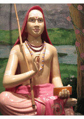 Rok: asi 788-asi 820 Ádi Šankara (v dévanágarí आदि शङ्कर), známý také pod jménem Šankara Bhagavatpádáčárja (učitel u nohou íšvary) a Ádi Šankaráčárja (první Šankaráčárja kláštera Džjótir Math) byl první indický filosof, který formuloval indickou filosofickou školu advaita-védántu. Jeho učení bylo založené na čistém monismu a ztotožnění individuálního bytí (átma) s universálním bytím (brahman).Ádi Šankara cestoval po Indii za účelem propagace filosofie jedné reality v diskusích s nejznámějšími indickými filosofy a světci. Založil ve čtyřech hlavních oblastech Indie kláštery (matha) a jejich představenými se stali jeho žáci Padma-páda, Hasta-málaka, Tótakáčárja a Vartika-kára, aby tuto nauku udržovali. Šankara sám napsal komentáře na všechny prasthánatrají (Bhagavadgítu, Brahmasútru a hlavní Upanišady) v Gaudapádíja-karikách. Známá jsou také filosofická pojednání o védántské filosofii jedné reality v Upadéša-sahasrí. Šankara citoval často z upanišad, když argumentoval proti učení sánkhji a jiným indickým filosofickým školám. Napsal i mnoho stóter (básní) oslavujících Kršnu, Višnua, Šivu, Déví, Gangu a další. Jeho údajně poslední dílo se nazývá Prabódha sudhákara (Měsíc Probuzení), v němž oslavuje čistou bhakti ke Kršnovi. |