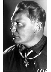Rok: 1893-1946 Hermann Wilhelm Göring (12. ledna 1893 sanatorium Marienbad v Rosenheimu, Bavorsko – 15. října 1946 Norimberk, sebevražda) byl německý nacistický politik a válečný zločinec. Původně letec, pak poslanec a předseda říšského sněmu. Zakladatel gestapa, ministr letectví, vrchní velitel Luftwaffe, říšský maršál, zástupce Hitlera po většinu druhé světové války. |