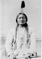 Rok: asi 1834-1890 Sitting Bull (Lakota: Tȟatȟáŋka Íyotake in Standard Lakota Orthography, also nicknamed Húŋkešni or "Slow"; c. 1831 – December 15, 1890) was a Hunkpapa Lakota holy man who led his people as a tribal chief during years of resistance to United States government policies. He was killed by Indian agency police on the Standing Rock Indian Reservation during an attempt to arrest him, at a time when authorities feared that he would join the Ghost Dance movement.Before the Battle of the Little Bighorn, Sitting Bull had a vision in which he saw the defeat of the 7th Cavalry under Lt. Col. George Armstrong Custer on June 25, 1876. Sitting Bull's leadership inspired his people to a major victory. Months after their victory at the battle, Sitting Bull and his group left the United States for Wood Mountain, North-West Territories (now Saskatchewan), where he remained until 1881, at which time he and most of his band returned to US territory and surrendered to U.S. forces. A small remnant of his band under Chief Waŋblí Ǧí decided to stay at Wood Mountain.After working as a performer with Buffalo Bill's Wild West show, Sitting Bull returned to the Standing Rock Agency in South Dakota. Because of fears that he would use his influence to support the Ghost Dance movement, Indian Service agent James McLaughlin at Fort Yates ordered his arrest. During an ensuing struggle between Sitting Bull's followers and the agency police, Sitting Bull was shot in the side and head by Standing Rock policemen Lieutenant Bull Head (Tatankapah Lakota: Tȟatȟáŋka Pȟá) and Red Tomahawk (Marcelus Chankpidutah Lakota: "Čhaŋȟpí Dúta") after the police were fired upon by Sitting Bull's supporters. His body was taken to nearby Fort Yates for burial. In 1953, his Lakota family exhumed what were believed to be his remains, reburying them near Mobridge, South Dakota, near his birthplace. |