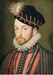 Rok: 1550-1574 Charles IX (27 June 1550 – 30 May 1574) was a monarch of the House of Valois who ruled as King of France from 1560 until his death. He ascended the throne of France upon the death of his brother Francis II.After decades of tension, war broke out between Protestants and Catholics after the massacre of Vassy in 1562. In 1572, after several unsuccessful peace attempts, Charles ordered the marriage of his sister Margaret of Valois to Henry of Navarre, a major Protestant leader and the future King Henry IV of France, in a last desperate bid to reconcile his people.Facing popular hostility against this policy of appeasement, Charles allowed the massacre of all Huguenot leaders who gathered in Paris for the royal wedding at the instigation of his mother Catherine de' Medici. This event, known as the St. Bartholomew's Day Massacre, crippled the Huguenot movement.Charles sought to take advantage of the disarray of the Huguenots by ordering the Siege of La Rochelle, but was unable to take the Protestant stronghold.He died without legitimate male issue in 1574 and was succeeded by his brother Henry III. |