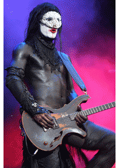 Rok: 1975- Wesley Louden "Wes" Borland (born February 7, 1975) is an American rock musician and artist. He is best known as the current guitarist and backing vocalist of the nu metal band Limp Bizkit and as the lead vocalist of the industrial rock band Black Light Burns.He gained popularity when Limp Bizkit achieved mainstream success in the late 1990s and early 2000s. He formed a band called Big Dumb Face with his brother Scott in 1998. Borland left Limp Bizkit in 2001 and started many side projects such as Eat the Day and The Damning Well. After rejoining Limp Bizkit in 2004, Borland founded Black Light Burns, with whom he has released three studio albums and a covers album. Limp Bizkit went on hiatus following the release of their album The Unquestionable Truth (Part 1) (2005). But, they reunited in 2009, and recorded their sixth studio album, Gold Cobra (2011).Borland is known for his sonic experimentation and elaborate visual appearance, which has included face and body paint, masks and uniforms. He has drawn album covers and created artwork for many of his music projects as well as oil paintings. Borland was voted #37 in Total Guitar's Top 100 Guitarists of All Time. |