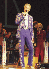 Rok: 1927-2007 Porter Wayne Wagoner (August 12, 1927 – October 28, 2007) was a popular American country music singer known for his flashy Nudie and Manuel suits and blond pompadour.In 1967, he introduced then-obscure singer Dolly Parton on his long-running television show, and they were a well-known vocal duo throughout the late 1960s and early 1970s.Known as Mr. Grand Ole Opry, Wagoner charted 81 singles from 1954–1983. He was elected to the Country Music Hall of Fame in 2002. |