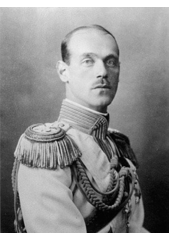 Rok: 1878-1918 Grand Duke Michael Alexandrovich of Russia (Russian: Михаи́л Александрович; 4 December [O.S. 22 November] 1878 – 13 June 1918) was the youngest son of Emperor Alexander III of Russia.At the time of his birth, his paternal grandfather (Alexander II of Russia) was still the reigning Emperor of All the Russias. Michael was fourth-in-line to the throne following his father and elder brothers Nicholas and George. After the assassination of his grandfather in 1881, he became third-in-line, and in 1894 after the death of his father, second-in-line. George died in 1899, leaving Michael as heir-presumptive to the throne.The birth of Nicholas's son Alexei in 1904 temporarily moved Michael back to second-in-line, but Alexei inherited the blood-clotting disorder haemophilia and was not expected to live. Michael caused a commotion at the imperial court when he took Natalia Sergeyevna Wulfert, a married woman, as a lover. Nicholas sent Michael to Orel, to avoid scandal, but this did not stop Michael, who travelled frequently to see his mistress. After the couple's only child, George, was born in 1910, Michael brought Natalia to St. Petersburg, where she was shunned by society. In 1912, Michael shocked Nicholas by marrying Natalia, in the hope that he would be removed from the line of succession. Michael and Natalia left Russia to exile abroad in France, Switzerland and England.After the outbreak of World War I, Michael returned to Russia, assuming command of a cavalry regiment. When Nicholas abdicated on 15 March [O.S. 2 March] 1917, Michael was named as his successor instead of Alexei. Michael, however, deferred acceptance of the throne until ratification by an elected assembly. He was never confirmed as Emperor, and following the Russian Revolution of 1917, he was imprisoned and murdered. |
