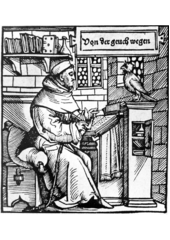 Rok: 1475-1537 Thomas Murner, OFM (24 December 1475-c. 1537) was a German satirist, poet and translator.He was born at Oberehnheim (Obernai) near Strasbourg. In 1490 he entered the Franciscan order, and in 1495 began travelling, studying and then teaching and preaching in Freiburg-im-Breisgau, Paris, Kraków and Strasbourg itself. The emperor Maximilian I crowned him in 1505 poeta laureatus; in 1506, he was created doctor theologiae, and in 1513 was appointed custodian of the Franciscan monastery in Strasbourg, an office which he was forced to vacate the following year for having published a scurrilous book. Later in life, in 1518, he began the study of jurisprudence at the University of Basel, and in 1519 took the degree of doctor juris.In the summer of 1523, at the invitation of Henry VIII, he went to England, where his writings had caught the attention of Thomas More.John Headley credits Murner for making More aware of the radical nature of Luther's ecclesiology.Henry VIII felt that Murner was an important orthodox influence in Strasbourg and give him £100 and a letter to the city magistrates.After this stay, and a journey in Italy, he again settled in Strasbourg, but, disturbed by the Protestant Reformation, went into exile at Lucerne in Switzerland in 1526. In 1533 he was appointed priest of Oberehnheim, where he died in 1537, or, according to some accounts, in 1536.Murner was an energetic and passionate character, but made enemies wherever he went. There is little human kindness in his satires, which were directed against the corruption of the times, the Reformation, and especially against Martin Luther. His most powerful satire—the most virulent German satire of the period—is Von dem grossen Lutherischen Narren wie ihn Doctor Murner beschworen hat ("On the Great Lutheran Fool", 1522). Others included Die Narrenbeschwörung (1512); Die Schelmenzunft (1512); Die Gäuchmatt, which treats of enamoured fools (1519), and a translation of Virgil's Aeneid (1515) dedicated to the emperor Maximilian I. Murner also wrote the humorous Chartiludium logicae (1507) and the Ludus studentum Friburgensium (1511), besides a translation of Justinian's Institutiones (1519).Murner's satires were edited in the 1840s by Johann Scheible. |