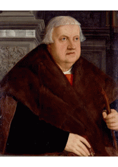Rok: 1465-1547 Conrad Peutinger (October 14, 1465 – December 28, 1547) was a German humanist, diplomat, politician, and economist. A senior official in the municipal government of the Imperial City of Augsburg, he served as a counselor to Emperor Maximilian I and his successor Charles V. Also known as a passionate antiquarian, he collected, with the help of his wife Margareta Welser (1481–1552), one of the largest private libraries north of the Alps. |