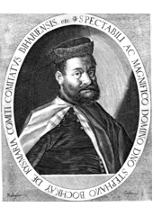 Rok: 1557-1606 Stephen Bocskai or István Bocskai (or Bocskay, Hungarian: Bocskai István (1 January 1557 – 29 December 1606) was a HungarianCalvinist nobleman, and Prince of Transylvania (1605–06), who was an eager advocate of the Hungarian interests and became the leader of a revolt against the Habsburg Holy Roman Emperor's effort to impose Roman Catholicism on the Kingdom of Hungary, when it was partitioned between the Ottoman Empire and the Habsburg Monarchy. He established an alliance with the Ottoman Empire and, supported by the hajdus, compelled archduke Matthias to reaffirm and guarantee religious freedom for both Royal Hungary and Transylvania concluded by the Treaty of Vienna (1606).As a recognized patron of Protestant Reformation, his statue can be found on the Reformation Wall in Geneva, Switzerland. |