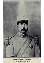 Rok: 1882-1948 Feng Yuxiang (traditional Chinese: 馮玉祥; simplified Chinese: 冯玉祥; pinyin: Féng Yùxíang; Wade–Giles: Feng Yü-hsiang; IPA: [fə́ŋ ỳɕi̯ɑ́ŋ]; 6 November 1882 – 1 September 1948) was a warlord and leader in Republican China from Chaohu, Anhui. He served as Vice Premier of the Republic of China from 1928 to 1930. He was also known as the Christian General for his zeal to convert his troops and the Betrayal General for his penchant to break with the establishment. In 1911, he was an officer in the ranks of Yuan Shikai's Beiyang Army but joined forces with revolutionaries against the Qing Dynasty. He rose to high rank within Wu Peifu's Zhili warlord faction but launched the Beijing coup in 1924 that knocked Zhili out of power and brought Sun Yat-sen to Beijing. He joined the Nationalist Party (KMT), supported the Northern Expedition and became blood brothers with Chiang Kai-shek, but resisted Chiang's consolidation of power in the Central Plains War, and broke with Chiang again in resisting Japanese incursions in 1933. He spent his later years supporting the Revolutionary Committee of the Kuomintang. |