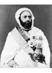 Rok: asi 1807-1883 Abdulkader ibn Muhieddine (6 September 1808 – 26 May 1883), (Arabic: عبد القادر ابن محيي الدين ʿAbd al-Qādir ibn Muḥyiddīn), known as the Emir Abdulkader or Abdulkader El Djezairi, was an Algerian "Sharif" religious and military leader who led a struggle against the French colonial invasion in the mid-19th century. An Islamic scholar and Sufi who unexpectedly found himself leading a military campaign, he built up a collection of Algerian tribesmen that for many years successfully held out against one of the most advanced armies in Europe. His consistent regard for what would now be called human rights, especially as regards his Christian opponents, drew widespread admiration, and a crucial intervention to save the Christian community of Damascus from a massacre in 1860 brought honours and awards from around the world. Within Algeria, his efforts to unite the country against foreign invaders saw him hailed as the "modern Jugurtha," and his ability to combine religious and political authority has led to his being acclaimed as the "Saint among the Princes, the Prince among the Saints". |