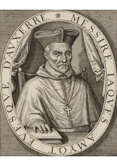 Rok: 1513-1593 Jacques Amyot (French: [amjo]; 30 October 1513 – 6 February 1593), French Renaissance writer and translator, was born of poor parents, at Melun.He found his way to the University of Paris, where he supported himself by serving some of the richer students. He was nineteen when he became M.A. at Paris, and later he graduated doctor of civil law at Bourges. Through Jacques Colure (or Colin), abbot of St. Ambrose in Bourges, he obtained a tutorship in the family of a secretary of state. By the secretary he was recommended to Margaret of France, Duchess of Berry, and through her influence was made professor of Greek and Latin at Bourges. Here he translated the Æthiopica of Heliodorus (1547), for which he was rewarded by Francis I with the abbey of Bellozane.He was thus enabled to go to Italy to study the Vatican text of Plutarch, on the translation of whose Lives (1559–1565) he had been some time engaged. On the way he turned aside on a mission to the Council of Trent. Returning home, he was appointed tutor to the sons of Henry II, by one of whom (Charles IX) he was afterwards made grand almoner (1561) and by the other (Henry III) was appointed, in spite of his plebeian origin, commander of the Order of the Holy Spirit.Pius V promoted him to the bishopric of Auxerre in 1570, and here he continued to live in comparative quiet, repairing his cathedral and perfecting his translations, for the rest of his days, though troubled towards the close by the insubordination and revolts of his clergy. He was a devout and conscientious churchman, and had the courage to stand by his principles. It is said that he advised the chaplain of Henry III to refuse absolution to the king after the murder of the Guise princes. He was, nevertheless, suspected of approving the crime. His house was plundered, and he was compelled to leave Auxerre for some time. He died bequeathing, it is said, 1200 crowns to the hospital at Orléans for the twelve deniers he received there when "poor and naked" on his way to Paris.He translated seven books of Diodorus Siculus (1554), the Daphnis et Chloë of Longus (1559) and the Opera Moralia of Plutarch (1572). His vigorous and idiomatic version of Plutarch, Vies des hommes illustres, was translated into English by Sir Thomas North, and supplied Shakespeare with materials for his Roman plays. Montaigne said of him, "I give the palm to Jacques Amyot over all our French writers, not only for the simplicity and purity of his language in which he surpasses all others, nor for his constancy to so long an undertaking, nor for his profound learning ... but I am grateful to him especially for his wisdom in choosing so valuable a work."It was indeed to Plutarch that Amyot devoted his attention. His other translations were subsidiary. The version of Diodorus he did not publish, although the manuscript had been discovered by him. Amyot took great pains to find and interpret correctly the best authorities, but the interest of his books today lies in the style. His translation reads like an original work. The personal method of Plutarch appealed to a generation addicted to memoirs and incapable of any general theory of history. Amyot's book, therefore, obtained an immense popularity, and exercised great influence over successive generations of French writers. |
