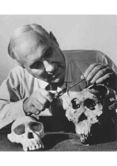 Rok: 1903-1972 Louis Seymour Bazett Leakey (L. S. B. Leakey) (7. srpna 1903 – 1. října 1972), britský antropolog, paleontolog, a soc. antropolog, narozen v Africe. Kurátor muzea v Nairobi. Při výzkumech v Tanzanii 1959 nalezl pozůstatky více než stovky hominidů. V rokli Olduvai objevil se svou ženou Mary Douglas Leakeyovou (1908-1996) kosterní pozůstatky primáta, později nazvaného Australopithecus boisei, 1964 objevil první kosterní pozůstatky jedince druhu Homo habilis. V jeho práci pokračuje syn Richard Leakey. |
