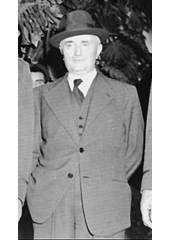 Rok: 1881-1942 Jean Louis Xavier François Darlan (7 August 1881 – 24 December 1942) was a French Admiral and political figure. He was Admiral of the Fleet and commander in chief of the French Navy in 1939 at the beginning of World War II. After France capitulated to Nazi Germany in 1940, Darlan served in the pro-German Vichy regime, becoming its deputy leader for a time. When the Allies invaded French North Africa in 1942, Darlan happened to be there. The Allies recognized him as head of French North Africa, and he ordered French forces to cease resisting and cooperate with the Allies. Less than two months later he was assassinated. |