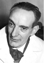 Rok: 1907-1992 Prof. Dr. rer. nat. Daniel Bovet (23. března 1907, Neuchâtel, Švýcarsko – 8. dubna 1992, Řím) byl italský farmakolog švýcarského původu. V roce 1957 obdržel za klíčový přínos moderní farmakologii Nobelovu cenu za fyziologii a medicínu. Bovet pracoval v Pasteurově ústavu v Paříži. Zde se zabýval studiem možností prevence anafylaktického šoku. V roce 1937 popsal účinky thymoxydiethylaminu, první látky blokující histamin. O pět let později vyvinul ve spolupráci s firmou Rhône-Poulenc první klinicky použitelné antihistaminikum – ANTERGAN. Během výzkumu Daniel Bovet zavedl dodnes používané výzkumné techniky, včetně těch, které vedly k pochopení mechanismu kompetitivní inhibice. |