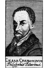 Rok: 1550-1631 Cesare Cremonini, sometimes Cesare Cremonino (Italian pronunciation: [ˈtʃeːzare kremoˈniːni]; 22 December 1550 – 19 July 1631) was an Italian professor of natural philosophy, working rationalism (against revelation) and Aristotelian materialism (against the dualist immortality of the soul) inside scholasticism. His Latinized name was Cæsar Cremoninus. or Cæsar Cremonius.Considered one of the greatest philosophers in his time, patronized by Alfonso II d'Este, Duke of Ferrara, corresponding with kings and princes who had his portrait, paid twice the salary of Galileo Galilei, he is now more remembered as an infamous side actor of the Galileo affair, being one of the two scholars who refused to look through Galileo's telescope. |