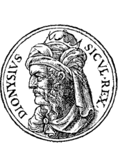 Rok: asi 430 př. Kr.-367 př. Kr. Dionysius I or Dionysius the Elder (Greek: Διονύσιος ὁ Πρεσβύτερος; c. 432 – 367 BC) was a Greek tyrant of Syracuse, in what is now Sicily, southern Italy. He conquered several cities in Sicily and southern Italy, opposed Carthage's influence in Sicily and made Syracuse the most powerful of the Western Greek colonies. He was regarded by the ancients as an example of the worst kind of despot—cruel, suspicious and vindictive. |