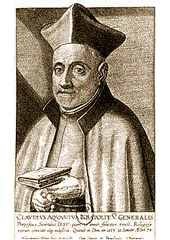 Rok: 1543-1615 Very Rev. Claudio Acquaviva, S.J. (14 September 1543 – 31 January 1615) was an Italian Jesuit priest elected in 1581 the 5th Superior General of the Society of Jesus. He is often referred to as the second founder of the Jesuit Order. Some older texts, including those illustrated in this article, spell his name Aquaviva. |