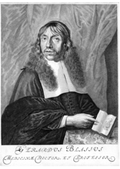 Rok: 1626-1692 Gerard "Gerrit" Leendertszoon Blasius (Amsterdam, 1627 - Amsterdam, 1682 ) was a Dutch physician and anatomist. He was the eldest son of Leonard Blasius (-1644), who had worked as an architect in Copenhagen. Gerard started his studies there, but the family moved to Leiden, after his father died. Around 1655 he became a physician in Amsterdam. In October 1659 Blasius was appointed at the Athenaeum Illustre but without being paid. In the next year he became the first Amsterdam professor in medicine. At his home or in the hospital corpses were dissected. In 1661 he claimed the discovery of Stensen's duct by his pupil Nicolas Stensen. Blasius had married Cornelia van Ottinga in 1653.His younger brother was the poet Joan Blasius↑ ↑ ↑ |