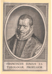 Rok: 1545-1602 Franciscus Junius (born François du Jon, 1 May 1545 – 13 October 1602) was a Reformed scholar and theologian. Born in Bourges, he initially studied law, but later decided to study theology in Geneva under John Calvin and Theodore Beza. He became a minister in Antwerp, but was forced to flee to Heidelberg in 1567. He wrote a major translation of the Bible into Latin with Emmanuel Tremellius, and his De Vera Theologia was an important text in Reformed scholasticism. |