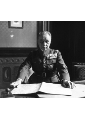 Rok: 1872-1958 Armádní generál (Général d'Armée) Maurice Gustave Gamelin (20. září 1872, Paříž – 18. dubna 1958, Paříž) byl francouzský generál, veterán z první světové války a jeden z otců Operace Pike – plánované akce Spojenců proti sovětským ropným polím, který vešel ve známost neúspěšnou obranou Francie v době jejího napadení Němci během druhé světové války v roce 1940. Mezi lety 1935–1940 byl vrchním velitelem francouzských vojsk. Gamelin je jednou z těch osob, které se proslavily jenom malou částí svého života, ale jejich kariéra je jinak neznámá. Jeho jméno je především spojováno s krátkým obdobím od vypuknutí druhé světové války do pádu Francie v květnu 1940. Jeho vojenská kariéra v době meziválečné tak zůstává neznámá. |