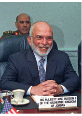 Rok: 1935-1999 Husajn I. (arabsky: حسين بن طلال, Ḥusajn bin Ṭalāl; 14. listopadu 1935, Ammán – 7. února 1999, Ammán), známý též jako Husajn Jordánský, byl králem Jordánska. Panoval 47 let, což je zatím nejdéle ze všech jordánských králů (na rozdíl od svého otce, krále Talála, který vládl nejkratší dobu). |